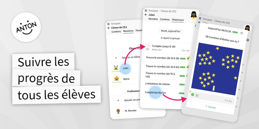 Pour celles et ceux qui ne la connaissent pas encore, ANTON est une application éducative gratuite, sans publicité, accessible sur ordinateur, tablette, smartphone et tableau interactif.