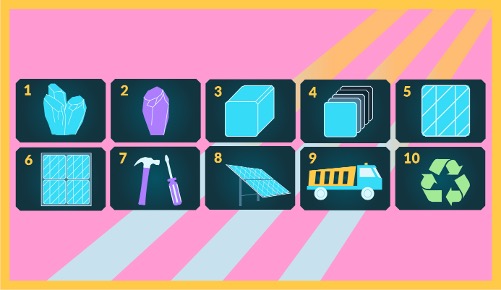 Que se passe-t-il avant qu’un panneau photovoltaïque produise de l’électricité ? Et que devient-il lorsqu’il doit être remplacé ou recyclé ? En parcourant l’infographie interactive, nos élèves découvrent toutes les étapes, depuis la transformation du quartz en silicium jusqu’à la collecte et au recyclage.