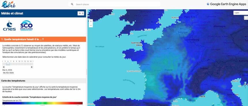 J’ai donc conçu un cahier des charges pour créer une interface plus simple et intuitive appelée météo et climat. L’idée était de garder la rigueur des données satellites du CNES et du CEPMMT (modèle ERA5), mais les traduire visuellement pour qu’elles « parlent » immédiatement aux élèves.